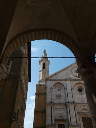 Pienza - Duomo facade. The town of Pienza is a small pearl in the Tuscan countryside. This fantastic town was declared an UNESCO World Heritage Site in 1996 and in 2004 the entire valley, the Val d'Orcia, was included on the list of UNESCO's World Cultura