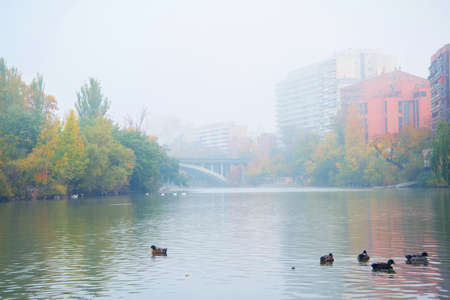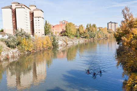 Valladolid, Spain, November 12, 2011. Pisuerga river passing through the city of Valladolid, with several kayakers