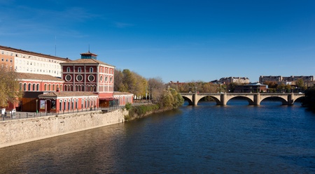 beautiful autumn natural view of the Ebro River in Zaragoza