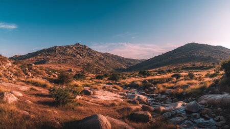 Golden Hour Light Bathing a Tranquil Mountain Landscape