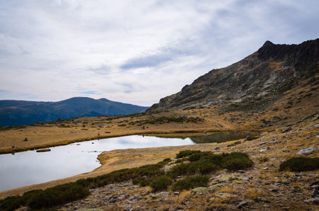 Lake on a rocky mountain landscape on Guadarrama mountain range, Peñalara, Madrid, Spain