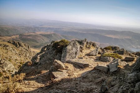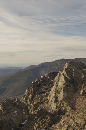 Almanzor peak, in the Gredos mountain on a sunny day. Copy space. Selective focus.