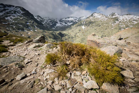 Mountaineering route from the Gredos Platform to the big lagoon. Circo de Gredos in Avila, Castilla y Leon.