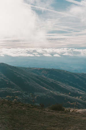 cloudy day with fog in the mountains of the natural park of the ports, in tarragona (spain). Photograph taken from a trail of the trekking path