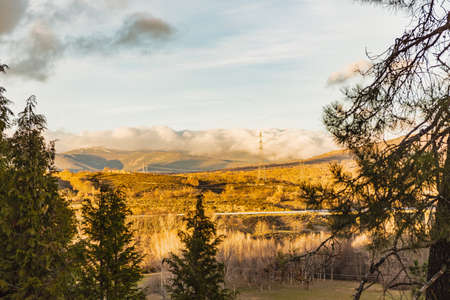 Landscape of the Sierra de Guadarrama of Madrid. Snowy autumn.