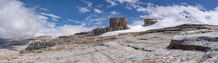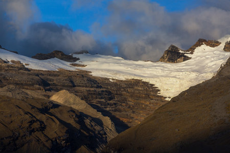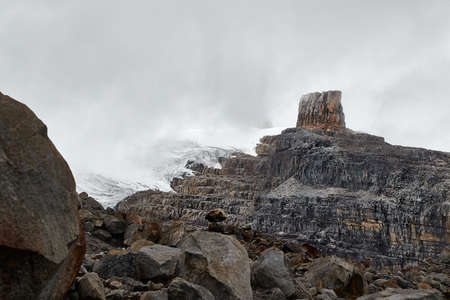 Panoramic view of a beautiful glacier called Pan de Azúcar in El Cocuy Colombia, next to the mountainous formation called Pulpit of the Devil.