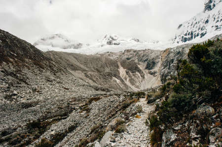Trekking path, mountain pass in Huascaran, Cordillera Blanca, Ancash, Peru
