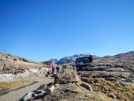 Road Cusco-Puno, Peru, South America. Sacred Valley of the Incas. Spectacular nature of mountains and blue sky.