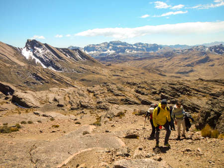 Trekkers going to the top of Mount Tunari, near Cochabamba, Bolivia