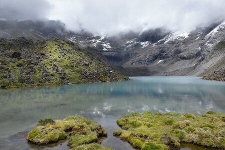 Pure lagoon at the feet of the snowy verdish 2 with a view of moss (distichia muscoides) in the foreground
