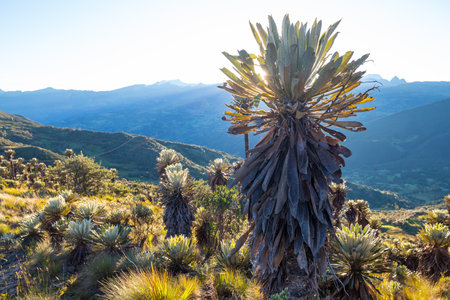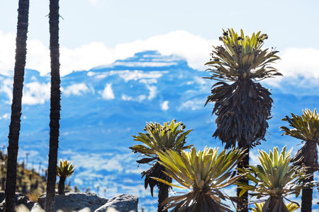 forest of frailejones or Espeletia, a beautiful plant in Colombian mountains, South America