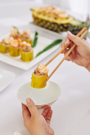 Chinese Preparing vegetable dim sum (yumcha). Asian Food chinese traditional food cuisine.