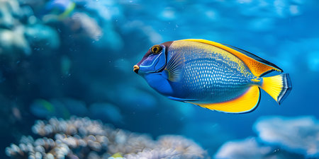 Ocean Background with Colorful Surgeonfish Swimming, Colorful Surgeonfish Gliding in Ocean Background, Vibrant Surgeonfish Swimming in Oceanic Background - Ai Generated