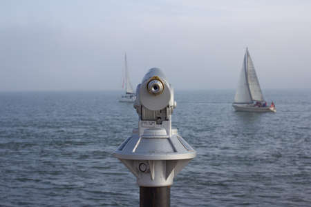 Coin operated binoculars on the background of the sea and sky