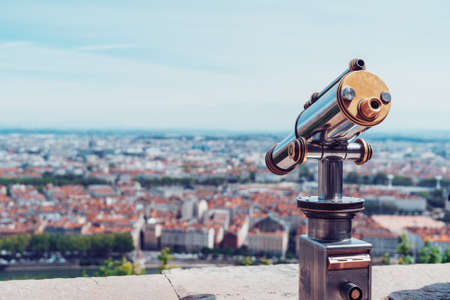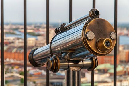 Telescope on top of observation deck in tourist place