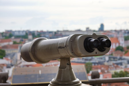 Binocular for use by tourists at Prague - selective focus