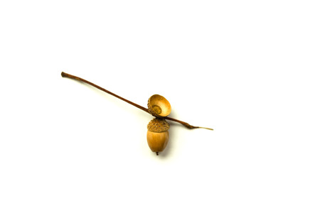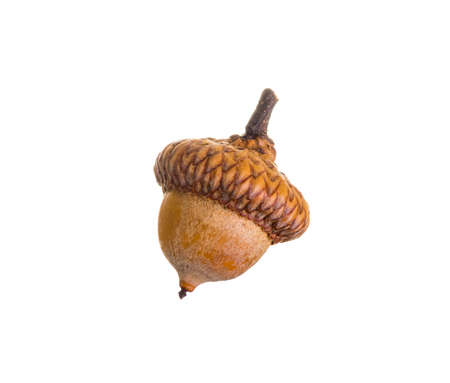 An old dry acorn. Isolated on white background. Close up. Selective focus