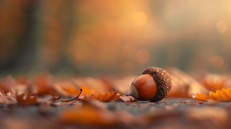 Vibrant acorns rest among a bed of crisp, fallen leaves, capturing the rich, earthy essence of the autumn season.