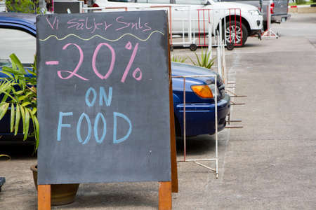 White '20% OFF' Text on a Black Square Paper Note. White Background
