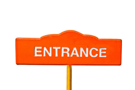 Arrow-pointer with the inscription Entrance hangs on a tree. Title: Entrance