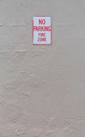 Close up of a sign that reads Dumpster Area No Parking against a concrete wall