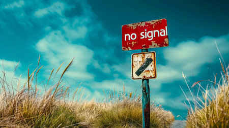 Holographic no signal icon on mobile phone, network connection issue representation.