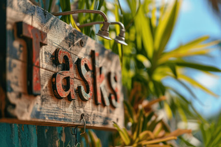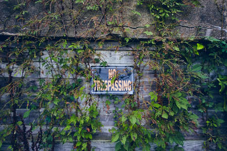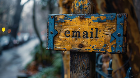 Vintage wooden signboard on a wall in the park. Selective focus.