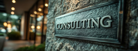 An engraved consulting sign prominently displayed on a stone wall at the entrance