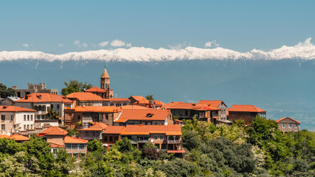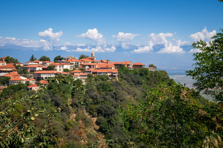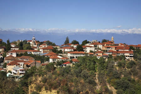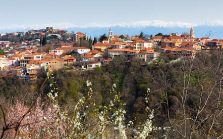 View on the Sighnaghi town and Caucasian mountains in Kakheti region, Georgia