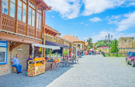 MTSKHETA, GEORGIA - JUNE 6, 2016: The numerous cafes and stalls offers national food, refreshing beverages, local wines, on June 6 in Mtskheta.