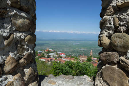 Ancient Georgian town Signakhi against Alazansky valley Kakheti