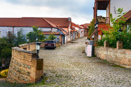 Signagi, Georgia - Sent 17, 2016: View of street in Signagi or Sighnaghi city at Kakheti region. It is City of Love in Georgia, with many couples visiting it just to get married
