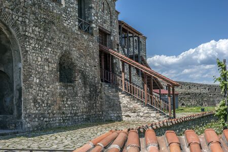 Black and white ancient fortifications in town Sighnaghi (Sighnaghi) in Georgia, region Kakheti, Caucasus mountains.