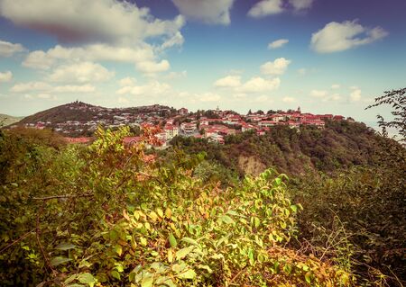 View to Sighnaghi (Signagi) old town in Kakheti region, Georgia. Toned picture