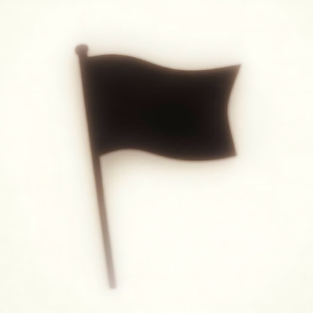 Dark flag is waving on a pole, the image is a soft focus shot with a blurry look against a cream background, suitable for background or conceptual design.