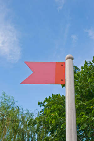 red flag indicating a dangerous situation on the background of the blue sky
