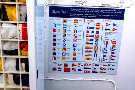 Flags Signs Notices for Yachting Shipping Marine boats for display of different commands warnings on wall display.