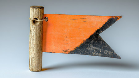 An orange and black rustic flag waves, stirring feelings of adventure and storytelling.