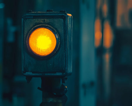 Orange warning light flashing on control panel in industrial setting