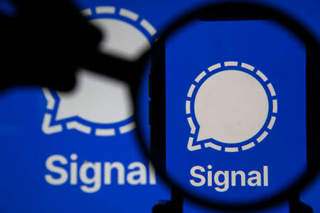 OXFORD, UK - February 2020: Signal private messing under magnifying glass