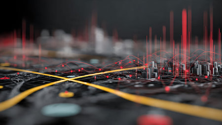A Digital map with location markers and illuminated connections
