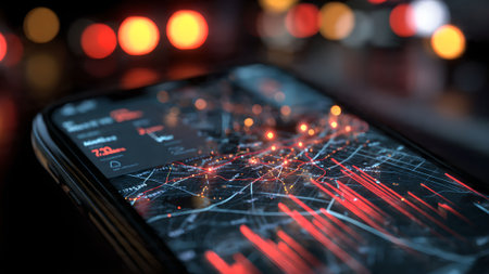 A dynamic representation of digital connectivity with glowing location markers, illustrating the concept of networking in a modern urban environment.