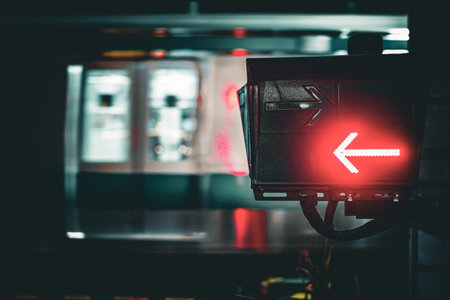 Arrow lights and passing trains. Shooting Location: Minato Ward, Tokyo