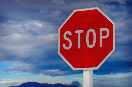 roadside red stop sign on a cloudy background. Sign isolated.