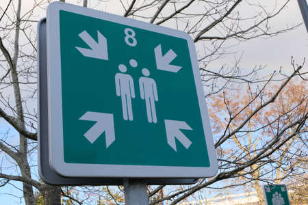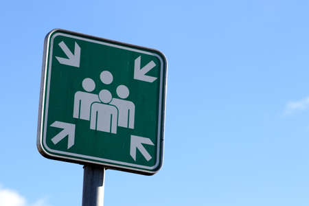 Sign with pictogram. Assembly Point for people in case of catastrophe or emergency.
