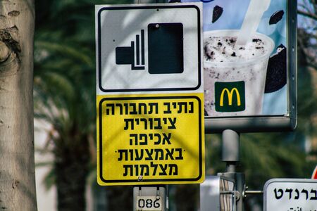 Tel Aviv Israel January 31, 2020 View of street sign in the city of Tel Aviv in the morning