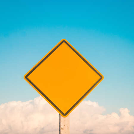 Yellow traffic sign on blue sky