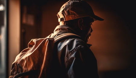 Man in conductor uniform oversees train operations during evening hours Generative AI