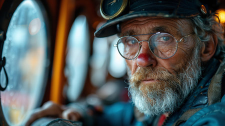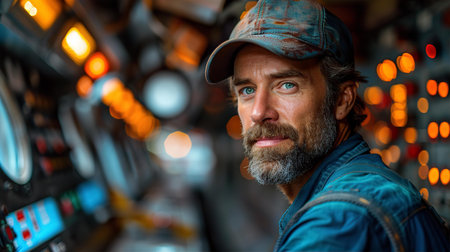 Portrait of a pilot in a ship's cabin. Shot in a ship's cabin.