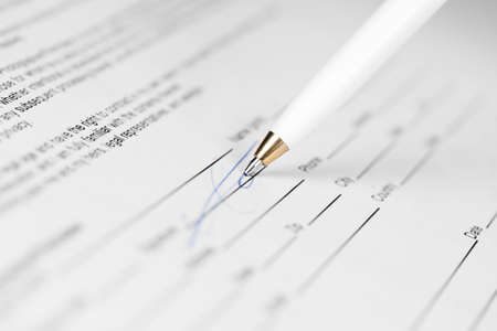 close-up on contract paper with pen
